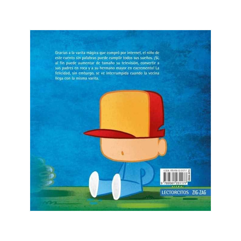 Zap / Esteban Cabezas Reseña: Todo comienza una mañana en que el protagonista de este cuento compra por internet una varita mágica que le permite hacer muchos de sus sueños realidad. ¡Zap! Consigue que su televisión aumente de tamaño. ¡Zap! Logra que sus padres se transformen en roca. ¡Zap! Su hermano mayor es un maloliente excremento. Pero la alegría de este niño durará poco, porque su vecina también ha comprado una varita y el enfrentamiento será peor. Una novedad muy diferente a lo ya publicado en la colección Lectorcitos Azul, Zap atraerá la atención de los niños acostumbrados a la estética de los comics y de los dibujos animados. Para el profesor será una herramienta para motivar a los alumnos a narrar su propia historia.ZAP