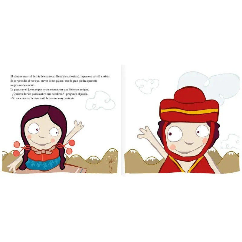 EL CONDOR Y LA PASTORA / MARCELA RECABARREN RESEÑA: Una pastora atacameña cuidaba sus llamas cuando vio acercarse a un misterioso joven. Se hicieron amigos y él la invitó a pasear. Ella aceptó sin imaginar que su destino cambiaría para siempre. Cuento basado en una leyenda atacameña.