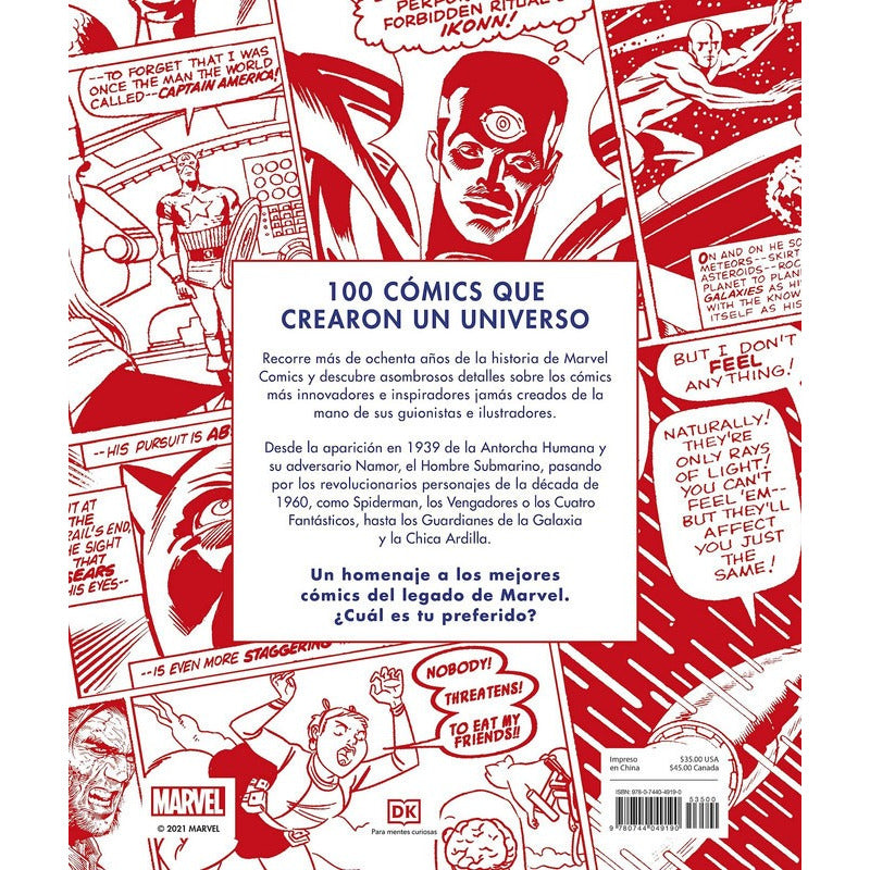 Grandes Comics DK ¿Qué cómics han ayudado a definir Marvel Comics y convertirlos en el fenómeno de la cultura pop que son hoy? Descúbrelo en Marvel Greatest Comics, una atractiva muestra de algunos de los cómics más innovadores e inspiradores jamás creados. Desde la innovadora Antorcha Humana original y su adversario acuático Namor, el Sub-Mariner en 1939 hasta los íconos de superhéroes revolucionarios de la década de 1960 como Spider-Man, los Vengadores y los Cuatro Fantásticos, hasta cambios de imagen modernos e inteligentes en el siglo XXI como Guardianes de la Galaxia y Chica Ardilla, Marvel han marcado el ritmo. La selección de este libro especialmente curada y evaluada por expertos es una evaluación asombrosamente ilustrada y perspicaz de Marvel Comics y su legado a través de los cómics que hicieron grande a la compañía. Estos son los cómics que cambiaron la cara de una industria. Estos son los mejores cómics de Marvel.» Características: Medidas: 307 x 260 x 25 mms. Paginas: 256 full color.