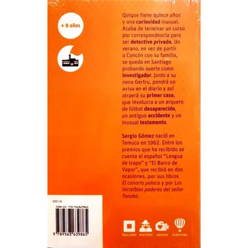Quique Hache Detective / Sergio Gomez Reseña: Quique tiene quince años y una curiosidad inusual. Acaba de terminar un curso por correspondencia para ser detective privado. Un verano, en vez de partir a Concón con su familia, se queda en Santiago probando suerte como investigador.