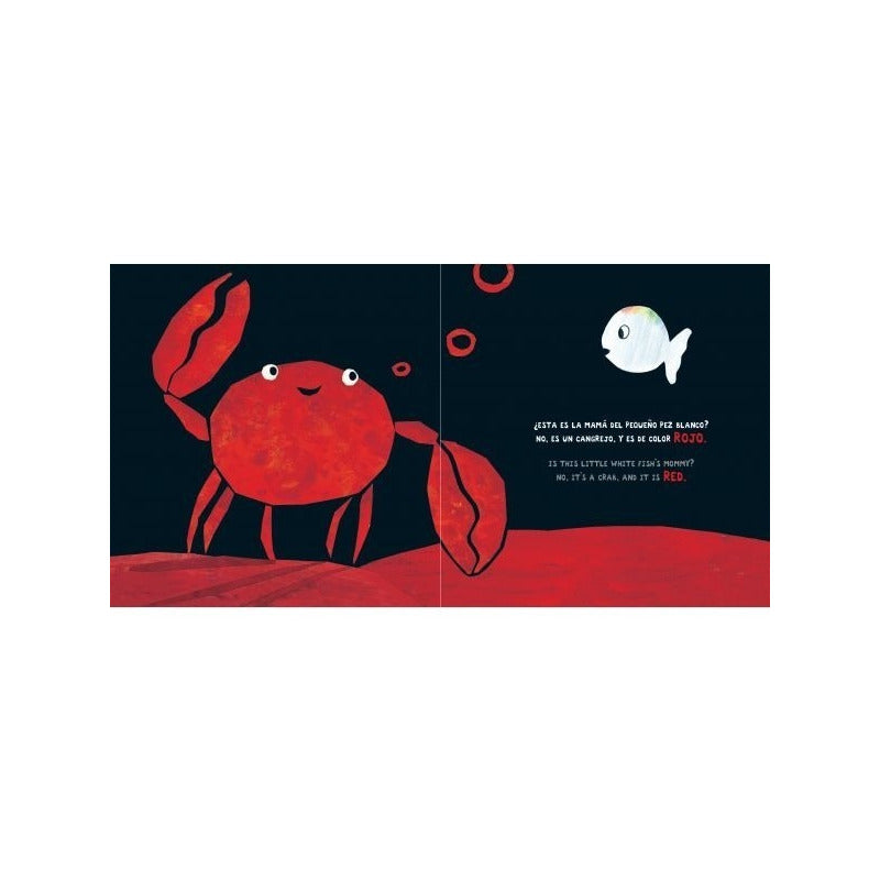 EL PEQUEÑO PEZ BLANCO (TAPA DURA) El pequeño pez emprende la búsqueda de su mamá y en el camino conoce a divertidos personajes. Un libro lúdico para que los niños aprendan en español e inglés.