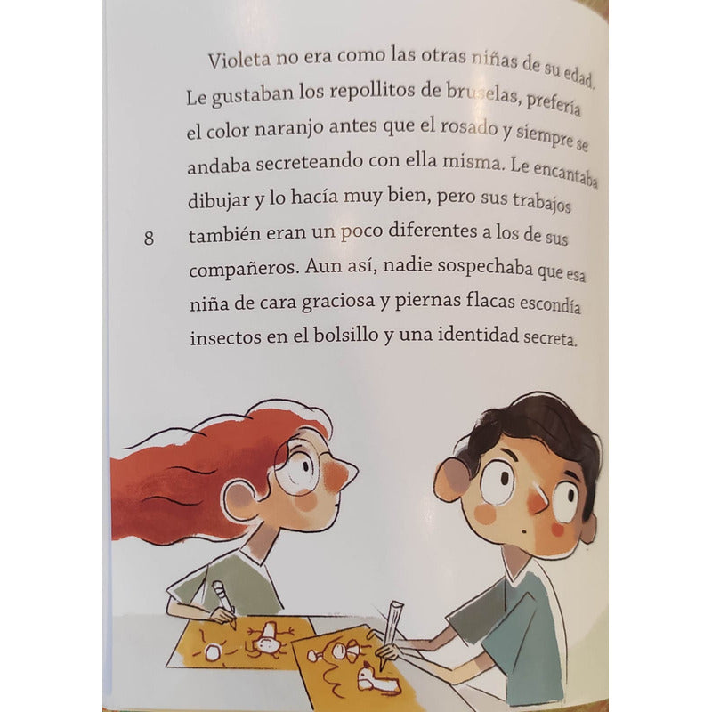 SUPERVIOLETA / MARI FERRER Reseña: Luego de salvar a su gata Tarantela de morir atorada con una bola de pelos Violeta lo ve todo con claridad: es SuperVioleta y su misión es proteger a sus seres queridos de los terribles peligros que los acechan. Para eso cuenta con superpoderes como su bondad a prueba de balas y tocarse la nariz con la punta de la lengua, pero también con una supercapacidad en meterse en superaprietos.