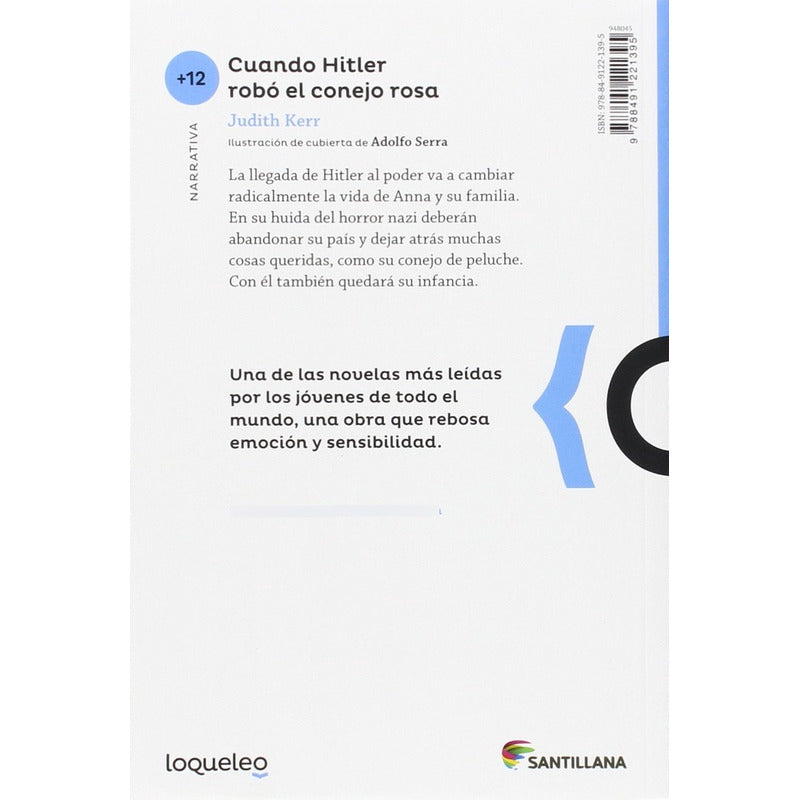 CUANDO HITLER ROBO EL CONEJO ROSA / JUDITH KERR Reseña: La llegada de Hitler al poder va a cambiar radicalmente la vida de Anna y de su familia. En su huida del horror nazi, deberán abandonar su país y dejar atrás muchas cosas queridas, como su conejo de peluche. Con él también se quedará su infancia. Cuando Hitler robó el conejo rosa es una de las novelas más leídas por los jóvenes de todo el mundo; una obra que rebosa emoción y sinceridad.
