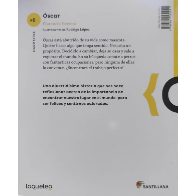 ÓSCAR / FLORENCIA HERRERA Reseña: Óscar está aburrido de su vida como mascota. Quiere hacer algo que tenga sentido. Necesita un propósito. Decidido a cambiar, deja su casa y sale a explorar el mundo. En su búsqueda conoce a perros con fantásticas ocupaciones, pero ninguna de ellas lo convence. ¿Encontrará el trabajo perfecto?