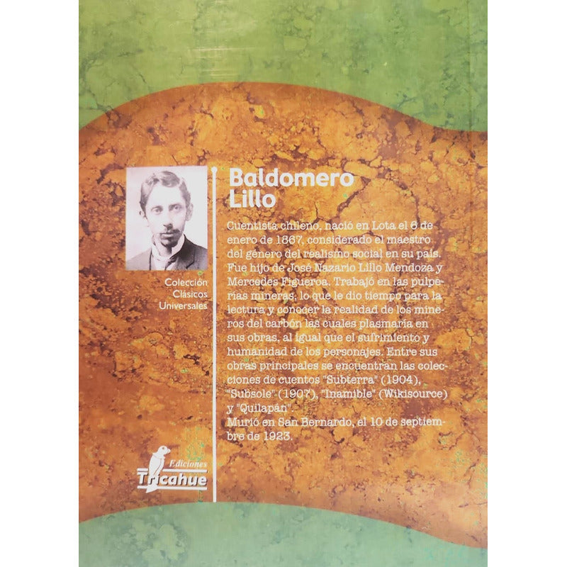 Sub sole / Baldomero Lillo Reseña: Sub sole contiene 13 cuentos que retratan la vida campesina, el trabajo del salitre, el inquilinaje y las costumbres populares chilenas de la época.