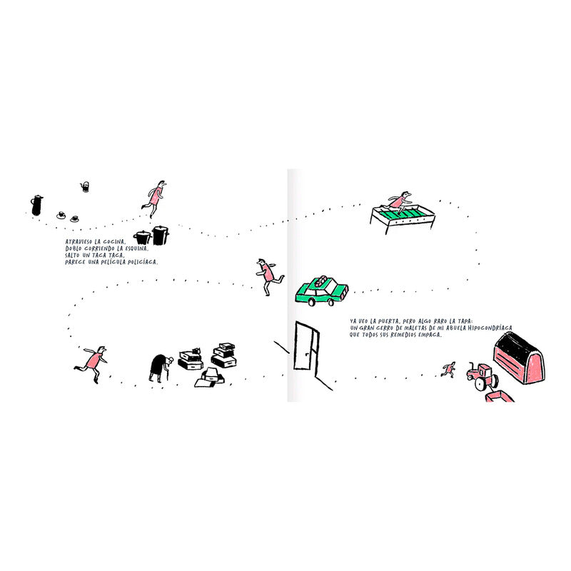 CACA / CAROLINA DELPIANO La Maca está que se hace caca y corre desesperada buscando un baño que, para estos efectos, vale más que el paraíso para un condenado o un trago de agua en el desierto. Pero el camino a la salvación está lleno de obstáculos y dificultades inesperadas. Esta odisea que nos relata Carolina Delpiano e ilustra Sol Undurraga tiene momentos de una tensión pesadillesca, porque entre las primeras contracciones y la salvación definitiva, asoman personajes fantásticos a los que les basta un verso o unas pocas líneas para existir de manera rotunda, juguetona y desesperante al mismo tiempo. Aquí la caca no huele, pero duele. No asquea ni repugna, sino que persigue a quien la padece como una culpa, como una debilidad inconfesable que vuelve cómplices a niños y viejos. Ambos saben perfectamente que para ser felices deben liberarse de ella. Y esta historia tiene un final feliz. ¡Qué alivio! Patricio Fernández.