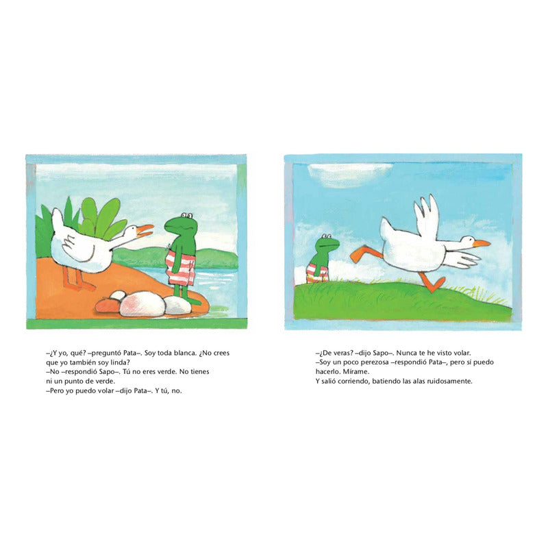 Sapo es Sapo Max Velthuijs Sapo quiere ser como sus amigos: Pata sabe volar, Rata construye todo tipo de cosas con las manos, Cochinito es un excelente cocinero, Liebre puede leer inmensos tomos de su biblioteca. Pero Sapo es solo un sapo verde sin ninguna virtud extraordinaria, aparte de ser él mismo. Una original historia que incentiva a apreciar cada individualidad.