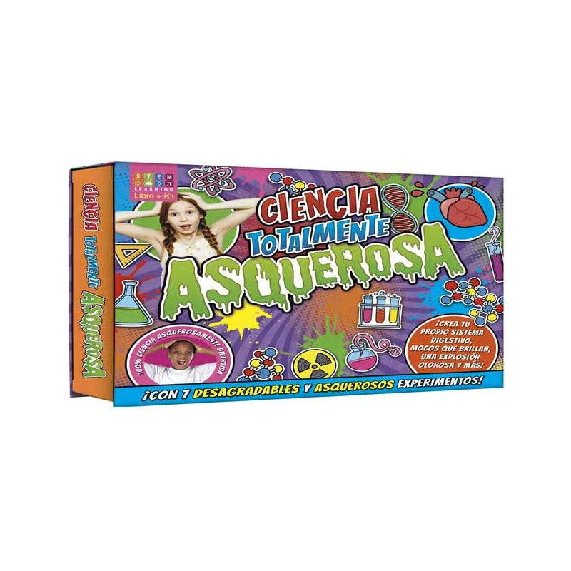 ¡Dentro encontrarás un libro lleno de datos desagradables y 7 asquerosos experimentos de ciencia! Incluye: Libro con datos y experimentos – Materiales para experimentos – Ciencia en acción – Colgador de puerta.