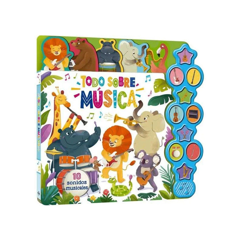 Con Todo Sobre Música: 10 Sonidos, aprende sobre la música con este libro ruidoso y lleno de datos interesantes. Con 10 sonidos de instrumentos y un tablero con sencillos botones, es la introducción perfecta al mundo de la música.
