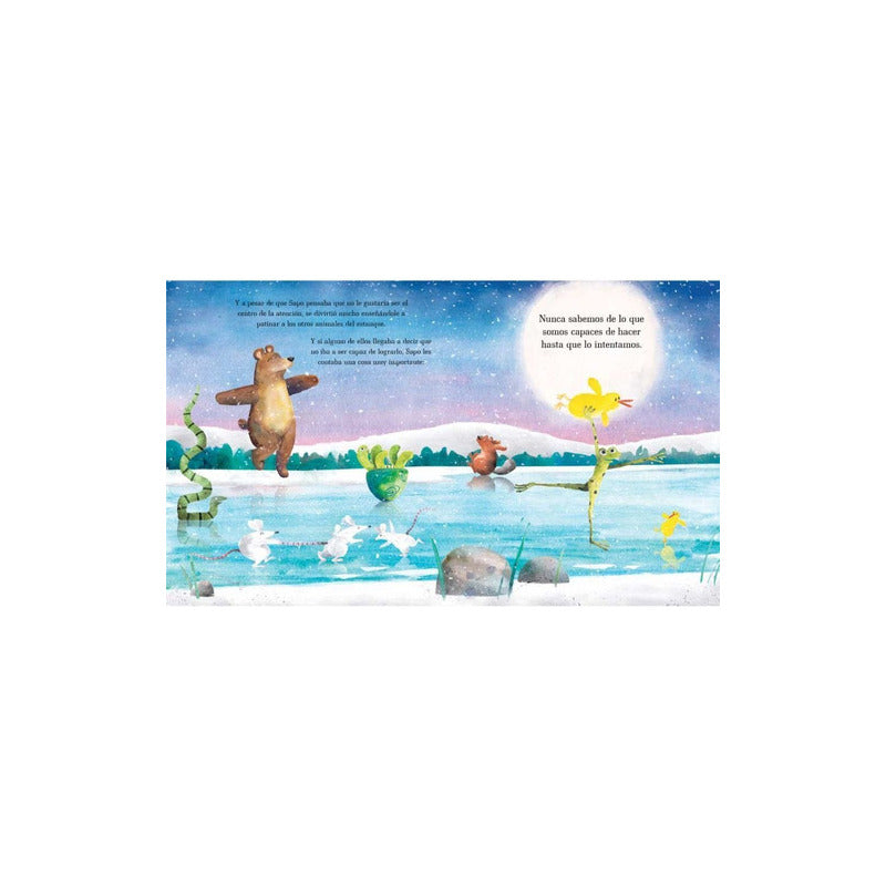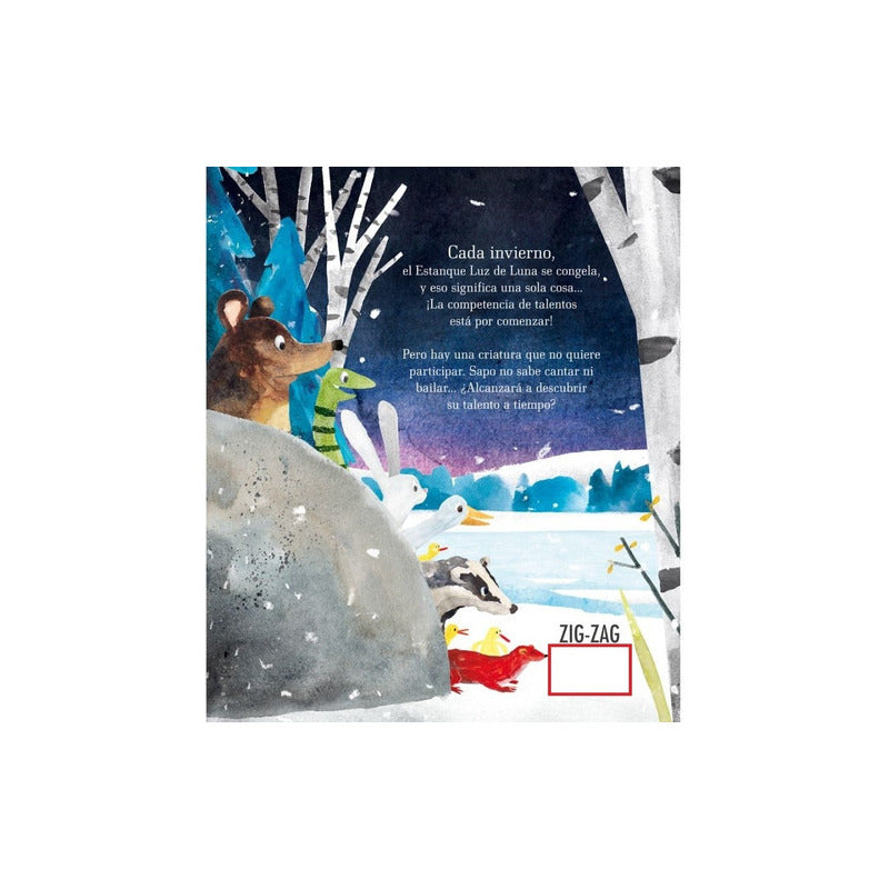 Cada invierno, el Estanque Luz de Luna se congela, y eso significa una sola cosa: ¡la competencia de talentos está por comenzar! Pero hay una criatura que no quiere participar. Sapo no sabe cantar ni bailar... ¿Alcanzará a descubrir su talento a tiempo? Esta historia hilarante y conmovedora nos muestra que no sabemos lo que somos capaces de hacer a menos que lo intentemos.