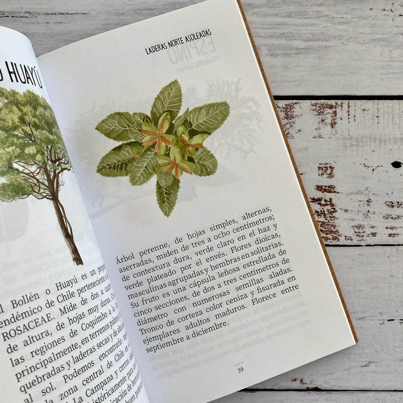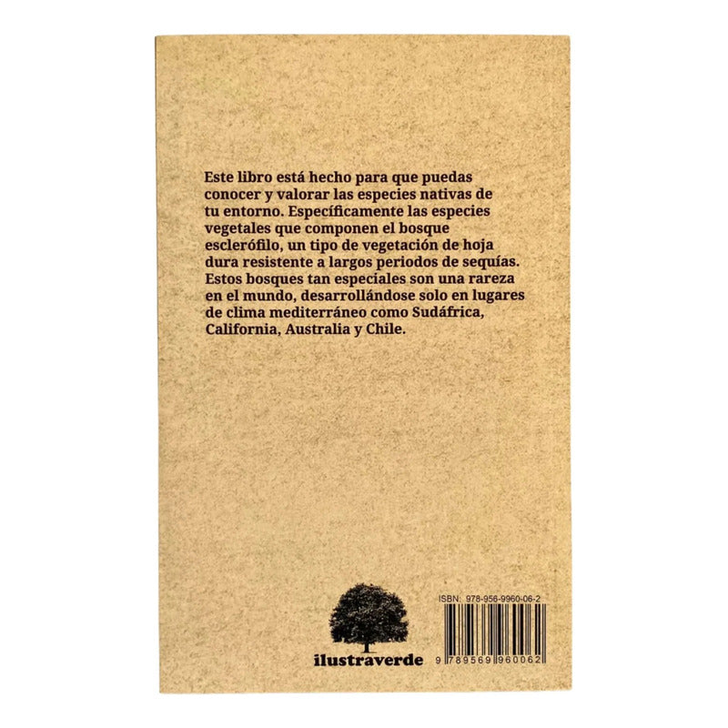 Este libro está hecho para que puedas conocer y valorar las especies nativas de tu entorno. Específicamente las especies vegetales que componen el bosque esclerófilo, un tipo de vegetación de hoja dura resistente a largos periodos de sequías. Estos bosques tan especiales son una rareza en el mundo, desarrollándose solo en lugares de clima mediterráneo como Sudáfrica, California, Australia y Chile.
