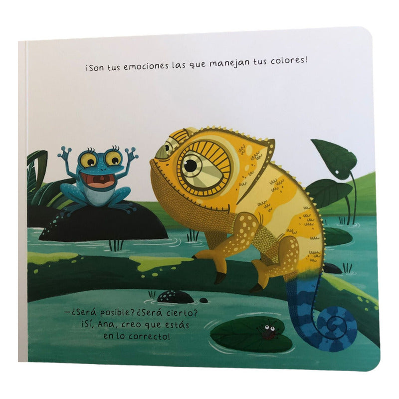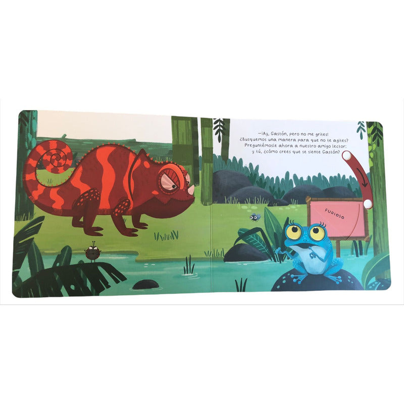 Gastón tiene un poder mágico: ¡logra cambiar de colores! El problema es que no sabe cómo controlarlo. Tanto cambio lo confunde y claramente afecta su estado de ánimo. En esta historia, su curiosa amiga Ana quiere ayudarlo a descifrar el enigma, pero para eso necesita de tú apoyo. Acompaña a Gastón en esta historia para que él pueda por fin entender qué es lo que le pasa. "¿Qué le pasa a Gastón?" busca apoyar el desarrollo socioemocional de los niños. Basándose en estrategias del “Yale Center for Emotional Intelligence”, este relato ayuda a que los niños puedan reconocer, entender y nombrar emociones, al mismo tiempo que incrementan su vocabulario emocional de manera interactiva. Incluye cuatro ruletas para que vayan descubriendo las emociones de Gastón. Es un libro que está pensado para que esté al alcance de los pequeños y pueda estar en algún estante o librero que les quede a su altura. Además, las esquinas tienen forma redondeada para que los niños no se vayan a lastimar con las puntas. Características del libro: El libro mide 20×19 cms y sus hojas son de cartón para que los niños puedan manipularlo sin problema, este incluye cuatro ruletas para que vayan descubriendo las emociones de Gastón. Es un libro que está pensado para que esté al alcance de los pequeños y pueda estar en algún estante o librero que les quede a su altura. Además, las esquinas tienen forma redondeada para que los niños no se vayan a lastimar con las puntas.