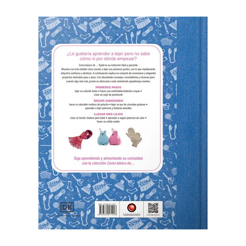 ¿Le gustaría aprender a tejer pero no sabe cómo ni por dónde empezar? Curso básico de... Tejido es su instructor ideal y paciente. Muestra con todo detalle cómo montar y tejer sus primeros puntos, con lo que rápidamente adquirirá confianza y destreza. A continuación explica un conjunto de numerosos y elegantes proyectos ilustrados paso a paso. Con abundantes consejos, recordatorios y recursos para cuando algo sale mal, pronto se aficionará a este entretenido pasatiempo creativo. EDITORIAL: Contrapunto ISBN: 978-956-257-104-3 ENCUADERNACIÓN: Tapa dura IDIOMA: Español N° DE PÁGINAS: 192 DIMENSIONES: 18 x 22 cm
