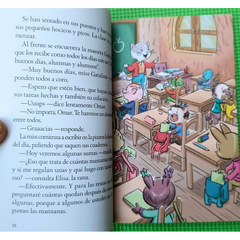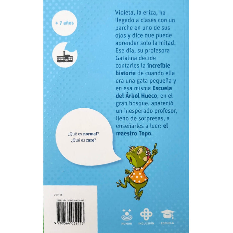 El maestro Topo Violeta, la eriza, ha llegado a clases con un parche en uno de sus ojos y dice que puede aprender solo la mitad. Ese día, su profesora Gatalina decide contarles la increíble historia de cuando ella era una gata pequeña y en esa misma Escuela del Árbol Hueco, en el gran bosque, apareció un inesperado profesor, lleno de sorpresas, a enseñarles a leer: el maestro Topo