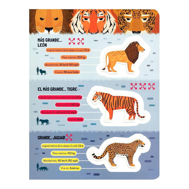 Descubre a los colosos del reino animal que habitan la Tierra y los mares. Encontrarás animales que viven en la tierra, el agua o el cielo y podrás saber cómo son, qué comen, qué hacen, quiénes son sus parientes. ¿Puedes adivinar cuál es el más grande? Volumen en tapa dura Estampado sectorizado brillante y troquelado Tamaño: 20 x 26 cm. 20 páginas con bellas ilustraciones y asombrosos animales en alto relieve ISBN: 9789962048084