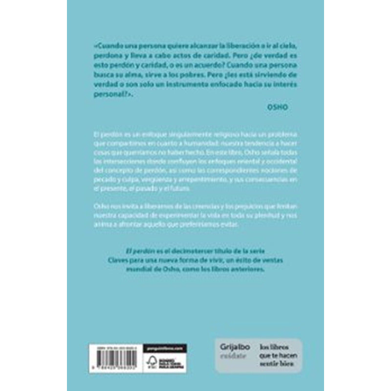 El Perdón es el decimotercer título de la serie Claves para una Nueva Forma de Vivir. un éxito de ventas mundial de Osho. uno de los místicos más conocidos y provocadores del siglo XX. Todos los preceptos milenarios de la humanidad nos enseñan: «Deshazte de la ira y adopta el perdón». Al crear extremos tan irresolubles. toda la humanidad se ha vuelto esquizofrénica. En este libro. Osho arroja luz sobre las intersecciones entre el enfoque oriental y occidental del concepto de perdón y sus conceptos relacionados de pecado y culpa. vergüenza y arrepentimiento. y desafía a los lectores a examinar y liberarse de los sistemas de creencias condicionados y los prejuicios que limitan su capacidad de vivir la vida en toda su riqueza. Una ingeniosa mezcla de compasión y humor. en el que se anima a los lectores a afrontar lo que más les gustaría evitar. lo que a su vez proporciona la clave para la verdadera perspicacia y el poder.