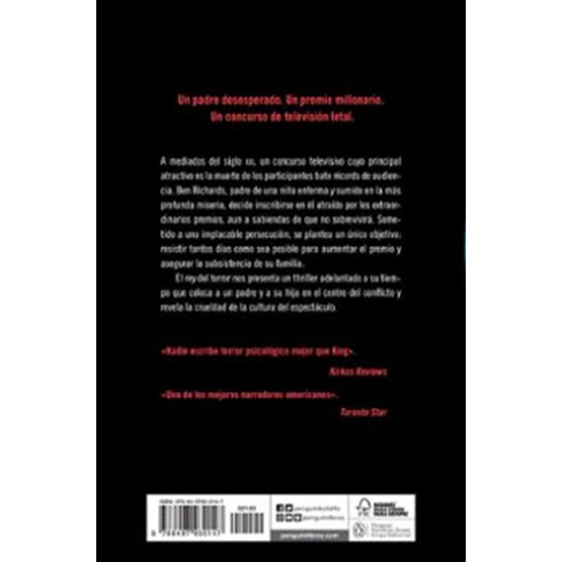 Una angustiante novela del maestro de terror Stephen King sobre un aterrador futuro donde la televisión es la única realidad. A mediados del siglo XXI, un concurso televisivo, cuyo principal atractivo es la muerte de los participantes, bate récords de audiencia. Ben Richards, padre de una niña enferma y sumido en la más profunda miseria, decide concursar atraído por los extraordinarios premios, aun a sabiendas de que no sobrevivirá. Sometido a una implacable persecución, se plantea un único objetivo: resistir tantos días como sea posible para aumentar el premio y asegurar la subsistencia de su familia..