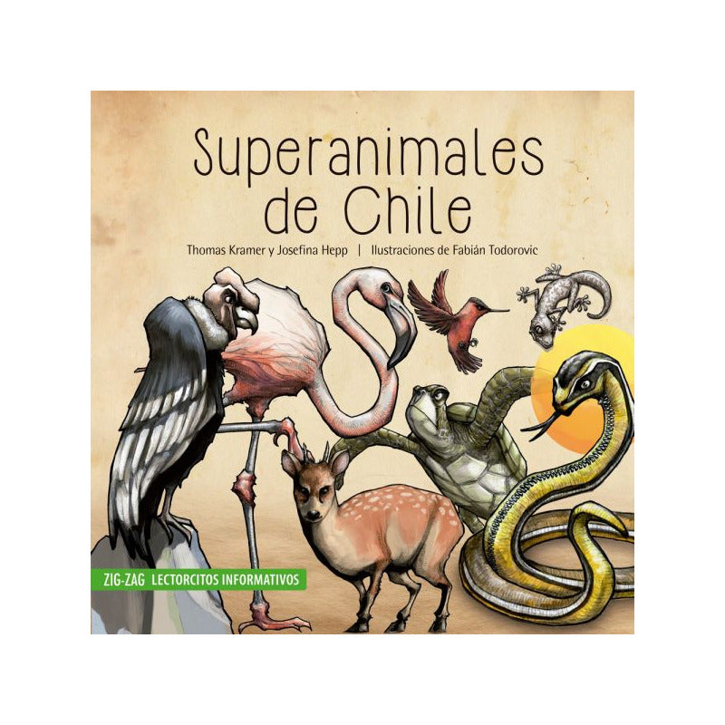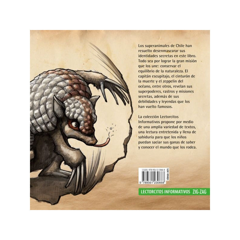 Super Animales de Chile / Thomas Kramer Reseña: ¿Cuáles son los superpoderes de los animales? ¿Sabes que la misión secreta del Tucúquere es comer ratones de cola larga, que transmiten el virus del hanta? ¿Quién es el compañero de aventuras del Quirquincho? ¿Qué leyendas conoces sobre los animales? Estas preguntas y muchas más te harán conocer el mundo animal de una manera divertida y llena de sabiduría, ¡te sorprenderás! Enseña sobre animales endémicos de chile en peligro de extinción, de forma divertida y atractiva para los niños y niñas.