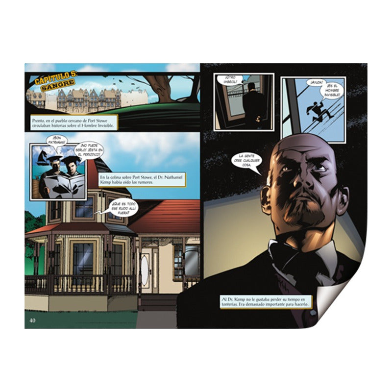 EL HOMBRE INVISIBLE (NOVELA GRAFICA) / H. G. Wells Reseña: Tarde una noche, un hombre misterioso llega a un pequeño pueblo inglés. Está envuelto en vendas de pies a cabeza. Tras una serie de robos, los aldeanos sospechan. ¿Quién es este hombre? ¿De dónde viene? Cuando los aldeanos intentan atraparlo, él de pronto revela su secreto... ¡es invisible! ¿Cómo podría alguien detener al Hombre Invisible? Las más grandes aventuras y los misterios más inquietantes de la literatura universal, en una nueva forma de experimentar estos clásicos de todos los tiempos, adaptadas por distintos autores.