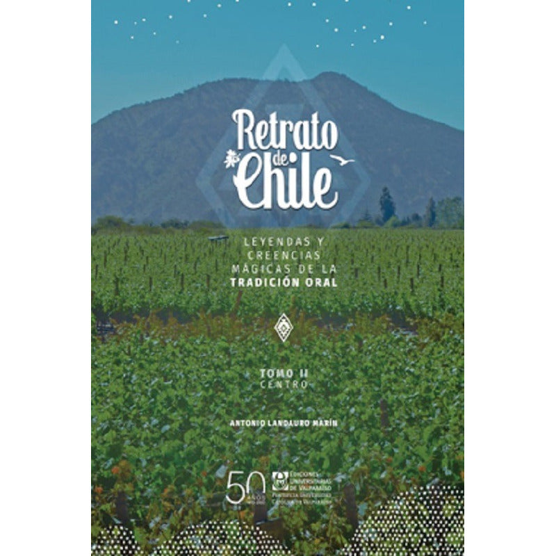 Retrato de Chile Tomo II Leyendas y creencias mágicas de la tradición oral. Reconstruye, en 3 tomos, parte del patrimonio de nuestra literatura oral, mitos y leyendas que, a modo de parábolas, develan nuestra idiosincrasia e identidad. El Tomo I, contiene 30 relatos que pertenecen a las regiones de Arica y Parinacota, Tarapacá, Antofagasta, Atacama y Coquimbo, y son testimonios de los legendarios días de la conquista y sus aguerridos hombres. El Tomo II, contiene 36 relatos que pertenecen a las regiones de Valparaíso, Metropolitana, Del Libertador General Bernardo O’Higgins, Del Maule, Del Ñuble y del Biobío, e ilustran pasajes y sucesos históricos de destacados marinos e ilustres personajes de la Colonia. El Tomo III, contiene 34 relatos que pertenecen a las regiones de La Araucanía, De los Ríos, De los Lagos, De Aysén del General Carlos Ibáñez del Campo, De Magallanes y de la Antártica Chilena, los textos que aquí se narran describen la vida, costumbres y cosmovisión de los mapuches y otras etnias del sur de Chile y el mestizaje que aquí floreció.