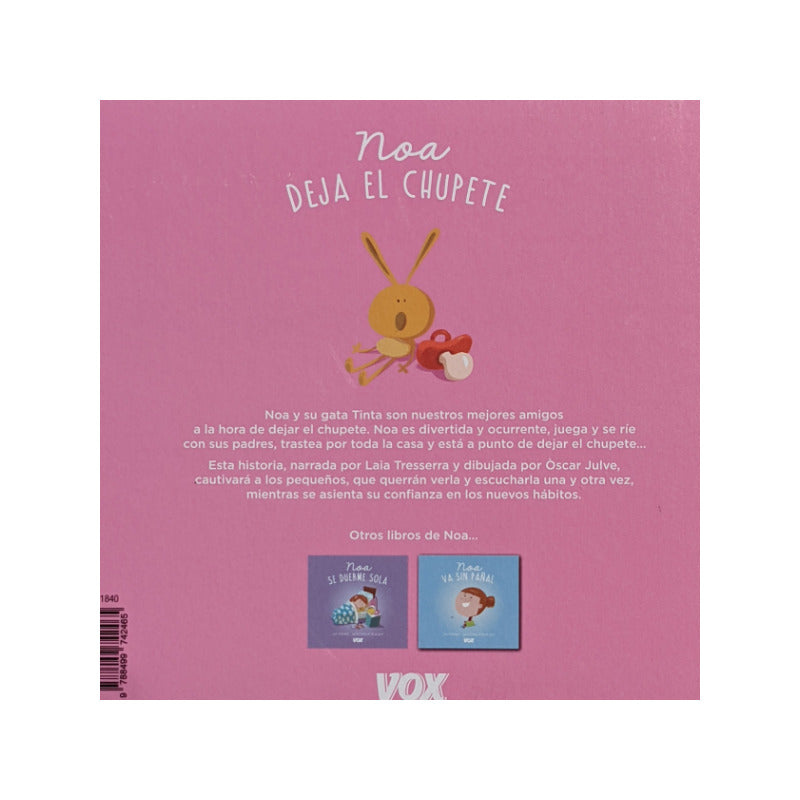 Una sonrisa es la mejor manera de ayudar a los más pequeños a ir dejando atrás un hábito tan arraigado en los primeros meses como es utilizar el chupete. Noa y su gato Tinta pueden ser los mejores aliados a la hora de cambiar esas rutinas que parecen tan asentadas. De una manera muy entretenida, con los dibujos de Òscar Julve, y una historia de esas que los más pequeños quieren oír y otra vez, la pequeña Noa descubre que se puede vivir sin chupete.