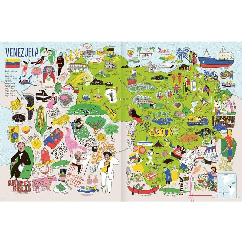 Atlas Americano (tapa Dura) / Amanuta 60 PÁGINAS. Un atlas es un libro que reúne una selección de mapas. Se trata de un tipo de libro inventado por impresores y fabricantes de mapas de diversas ciudades europeas hace más de 500 años, en el siglo XVI. En los atlas de esos años se dibujaron territorios y sociedades que hasta entonces habían permanecido separados. Para ello, se recortó, organizó y fijó el espacio conocido para hacer caber sus diferentes partes en una página impresa de papel. Así, se fue forjando una nueva imagen del mundo y se ofreció al lector la posibilidad de asombrarse y recorrer diversos territorios con la vista, al dar vuelta las hojas. El propio continente americano, en tanto unidad geográfica, fue inventado en esa época, cuando diferentes actores del mundo europeo se apropiaban de territorios distantes para volcar en ellos sus aspiraciones económicas, religiosas y políticas. Con el paso de las décadas y los siglos, las experiencias de las sociedades americanas permitieron elaborar nuevas ideas, proyectos y mapas del espacio que hoy habitamos. El Atlas de América para niños que presentamos recoge, de este modo, una larga tradición en que el mapa sirve para imaginar, mostrar, conocer y recorrer el mundo con la mirada. En este atlas hemos querido dar cuenta de la riqueza de la historia de nuestro continente, en la que confluyen sociedades indígenas y distintas culturas migrantes de Europa, África y otras partes del mundo. Para expresar la experiencia de los habitantes de un continente tan diverso en paisajes y gentes como el americano, estos mapas muestran dimensiones de la geografía física, política y económica; las que comúnmente reconocemos en los mapas que vemos. Pero también se puede encontrar en ellos temáticas como la ecología, las lenguas, las costumbres y las actividades cotidianas, las tradiciones patrias, personajes de la historia y cultura popular, el patrimonio material e inmaterial y los desafíos sociales y medioambientales. Este libro ha sido pensado desde sus inicios como un libro para toda edad. Pero nuestra editorial tiene un compromiso con los niños y jóvenes de América, que son nuestros lectores fieles. Pensando en ellos, hemos omitido conscientemente toda alusión explícita a las armas y a las drogas. Aún sabiendo que son temas de gran relevancia en nuestro continente y en el mundo. Consideramos que mencionar estos temas en este libro, en forma superficial y sin un contexto, no era adecuado ni pertinente.