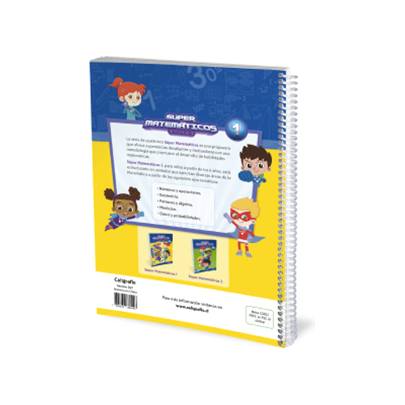 Super Matemáticos 1 Caligrafix Última Edicion 166 PÁGINAS ULTIMA EDICION VIGENTE AL 2025 Súper Matemáticos Nº1 A partir de 6 años (1° básico) Súper Matemáticos Nº1, entrega una propuesta de trabajo organizada en 7 unidades de aprendizaje y presenta actividades que incentivan la experimentación y la manipulación de material concreto. Cada unidad cuenta con secciones que articulan los contenidos, el desarrollo de habilidades e instancias de evaluación: Inicio de unidad: Presentación que activa y explora los conocimientos previos. Activo lo que sé: Página para utilizar como evaluación diagnóstica. Páginas de desarrollo: Actividades que incluyen variadas instancias de exploración, construcción y aplicación de contenidos. Busco soluciones: Actividades de resolución de problemas relacionadas con el objetivo de aprendizaje de la unidad, a partir de contextos cercanos a los niños y niñas o desde una temática lúdica. Potencio mis habilidades: Páginas de desafíos matemáticos que ofrecen diversas situaciones que representan un reto intelectual para los niños y niñas. Aplico lo aprendido: Actividades que permiten sintetizar y evaluar lo aprendido, integrando los contenidos vistos durante la unidad.
