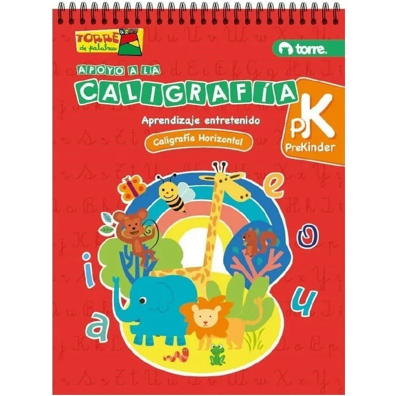 Caligrafia Torre De Palabras Prekinder 128 PÁGINAS. Atributos Alineado al programa del Ministerio de Educación. Cuadernos extra reforzados. Hoja de stickers para refuerzo positivo. Espiralado para facilitar el desarrollo de las actividades. A todo color. prebasica Características El cuaderno se divide en cuatro partes: Razonamiento lógico, Motricidad(apresto), Iniciación a la escritura, Iniciación a la lectura. Cada parte está identificada por un color. Las que vienen señaladas en el índice y se diferencian del color del marco de la hoja. Cada guía tiene en el extremo superior un espacio para escribir el nombre y la fecha. Se trabajan las vocales. Letra mayúscula y minúscula con un punto al inicio y con la flecha que indica la direccionalidad. Cuaderno Torre de palabras Prekinder. 64 Hojas. 28 x 21,2. Espiral. Contenidos Orientación espacial. Lectura y escritura de vocales. Orden alfabético. Signos de exclamación e interrogación. Tiempos verbales. Artículos. Segmentación silábica y sílaba tónica.