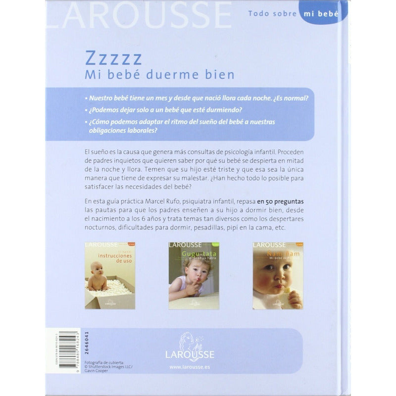Zzzzz Mi Bebe Duerme Bien (tapa Dura) / Rufo Y Schilte Reseña: 112 PÁGINAS. Este manual forma parte de la colección " Todo sobre mi bebé " , que pretende ayudar a los padres, sobre todo a los primerizos, en esos meses en que las dudas forman parte del día.ZZZ. MI bebé duerme bien es una obra muy práctica y manejable, que representa la información organizada de una manera muy clara, mediante 50 preguntas y sus correspondientes respuestas.El manual recoge todo tipo de situaciones relacionadas con el sueño de los bebés desde el momento del nacimiento hasta los 6 años. El uso (recomendado o no) del chupete para dormir, la rutina de la siesta, los peluches, los sueños infantiles y los terrores nocturnos, las alteraciones de horarios, la enuresis... son sólo algunos de los muchos asuntos que aborda este manual, concebido para ayudar a los padres. Zzzz. Mi bebé duerme bien es además un manual muy gráfico, repleto de fotografías que ilustran los comentarios y que permiten que el libro ofrezca un aspecto muy atractivo. Al final del mismo, un índice y un apartado de páginas web y de direcciones útiles refuerzan el carácter práctico de este manual, pensado para los padres de hoy.Un libro concebido y escrito por el prestigioso psicólogo infantil Marcel Rufo. Público: Padres primerizos, necesitados de un manual que responsa con rapidez a sus dudas.