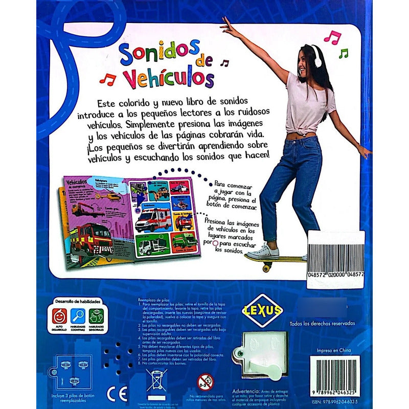 Sonidos De Vehículos (tapa Dura) / Lexus Reseña: Este colorido y nuevo libro de sonidos introduce a los pequeños lectores a los ruidosos vehículos. Simplemente presiona las imágenes y los vehículos de las páginas cobrarán vida. ¡Los pequeños se divertirán aprendiendo sobre vehículos y escuchando los sonidos que hacen! Formato 24 x 28 cm Tapa dura e interiores en cartón plastificado Ilustraciones realizadas especialmente para los más pequeños 60 sonidos de vehículos Baterías incluidas.