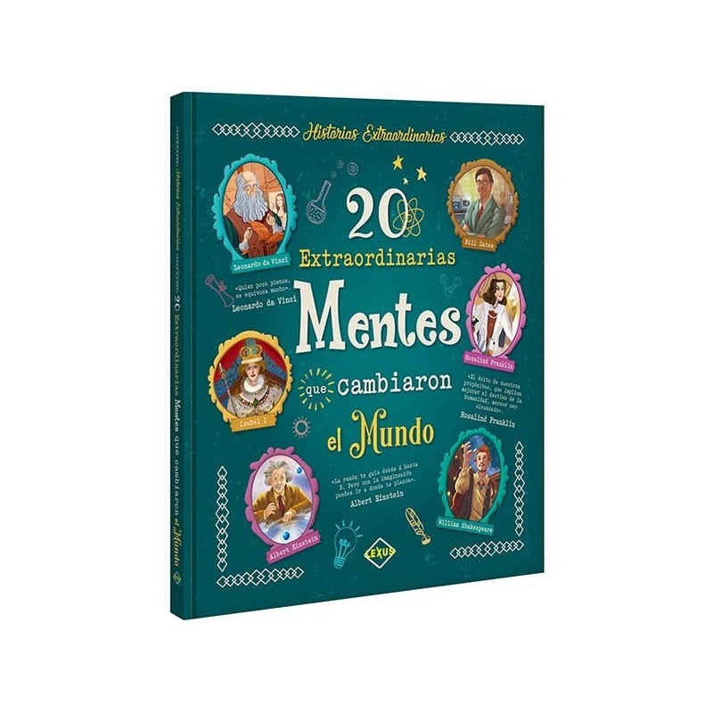 20 Extraordinarias Mentes Que Cambiaron El Mundo / Lexus ¡20 Historias de personas con grandes sueños, gran talento y perseverancia que se convirtieron en grandes mentes! Leonardo da Vinci, Albert Einstein, Aristóteles, William Shakespeare, Gabriel García Márquez, Arquímedes, Galileo Galilei, Louis Pasteur, Sigmund Freud, Lise Meitner, Rita Levi Montalcini entre otros. Libro lujosamente encuadernado en tapa dura, con estampado sectorizado brillante 88 páginas impresas a todo color Excelentes ilustraciones Formatos: 23.5 x 26.5 cm Edad: 7+ años