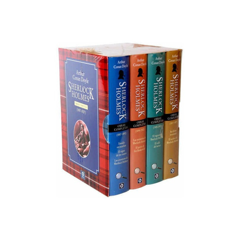 Sherlock Holmes Obra Completa (4 Tomos) / Conan Doyle Reseña: Tapa Dura. 1712 páginas. Sir Arthur Conan Doyle escribió entre los años 1867 y 1927 cuatro novelas y multitud de relatos del detective de ficción Sherlock Holmes. En esta edición, hemos recogido en orden cronológico, las obras completas del famoso detective en cuatro bellos volúmenes.