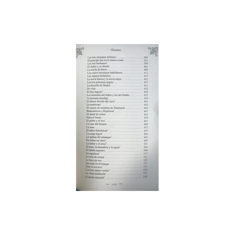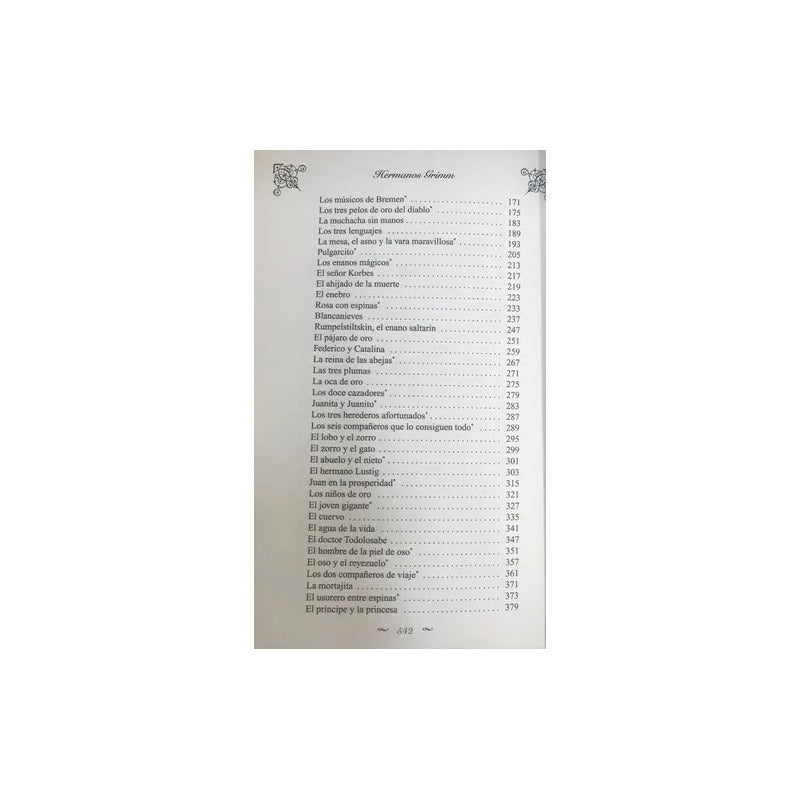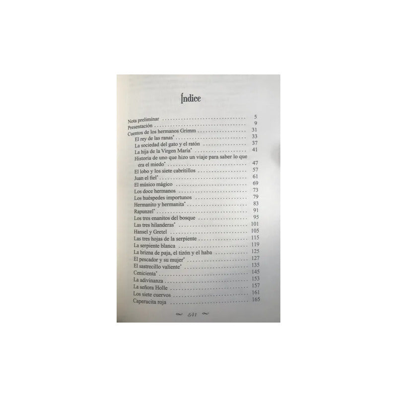 Antología Cuentos (tapa Dura) / Hermanos Grimm Tapa Dura - Lujo. 544 páginas. Hemos partido en esta selección de cuentos de Jacob y Wilhelm Grimm —más conocidos por su nombre conjunto de «Hermanos Grimm»— de la traducción histórica que realizó José Sánchez Biedma para la que fue la primera publicación de estos cuentos traducidos al castellano desde su original en alemán, que la casa Gaspar y Roig de Madrid publicó en 1867 con una selección de 46 de los ya muy famosos cuentos bajo el título Cuentos escogidos de los Hermanos Grimm.