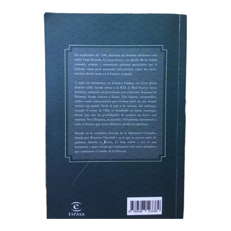 El Largo Camino A Casa / Alan Hlad Reseña: 480 páginas. En septiembre de 1940, mientras las bombas alemanas caen sobre Gran Bretaña, la joven Susan y su abuelo Bertie hallan consuelo criando y entrenando palomas mensajeras que el Ejército usará para transmitir información sobre los movimientos de los nazis en la Francia ocupada. A miles de kilómetros, en Estados Unidos, un joven piloto llamado Ollie decide unirse a la RAF, la Real Fuerza Aérea británica, entrando así en contacto con el Servicio Nacional de Palomas, donde conoce a Susan. Tras hacerse inseparables, ambos serán seleccionados para formar parte de una misión secreta que puede llevar al país a la victoria. Sin embargo, cuando el avión de Ollie es derribado en líneas enemigas, Susan sabe que las posibilidades de reunirse de nuevo son remotas. Pero Duquesa, su querida y fiel paloma, demostrará a todo el mundo que nunca debemos perder la esperanza.En septiembre de 1940, mientras las bombas alemanas caen sobre Gran Bretaña, la joven Susan y su abuelo Bertie hallan consuelo criando y entrenando palomas mensajeras que el Ejército usará para transmitir información sobre los movimientos de los nazis en la Francia ocupada. A miles de kilómetros, en Estados Unidos, un joven piloto llamado Ollie decide unirse a la RAF, la Real Fuerza Aérea británica, entrando así en contacto con el Servicio Nacional de Palomas, donde conoce a Susan. Tras hacerse inseparables, ambos serán seleccionados para formar parte de una misión secreta que puede llevar al país a la victoria. Sin embargo, cuando el avión de Ollie es derribado en líneas enemigas, Susan sabe que las posibilidades de reunirse de nuevo son remotas. Pero Duquesa, su querida y fiel paloma, demostrará a todo el mundo que nunca debemos perder la esperanza.