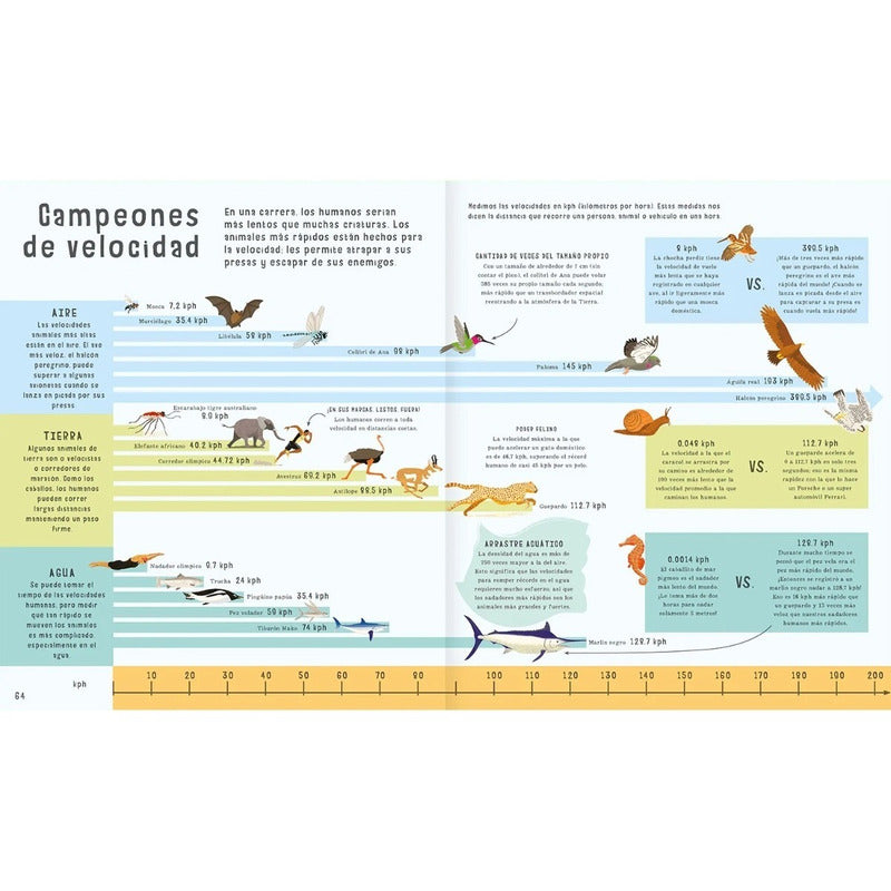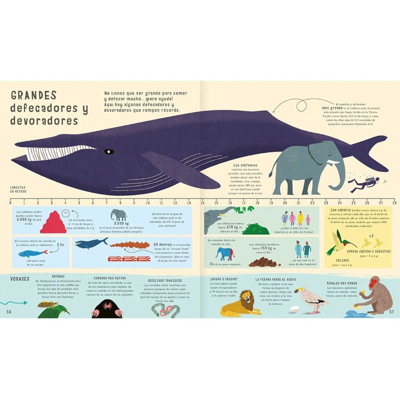 El Libro De Las Comparaciones (tapa Dura) / Clive Gifford Reseña: 96 PÁGINAS. Este libro mide y compara a los más fuertes, a los más grandes, a los más rápidos, a los que más comen, entre otras cosas. Hay cosas que son tan grandes o tan pequeñas que cuesta muchísimo imaginarlas, pero compararlas es una forma de ver cómo son. Por ejemplo, el caballito de mar se demora dos horas en nadar tres metros; o el corazón de una ballena azul es del tamaño de un automóvil pequeño; o las glándulas salivales producen seis tazas de saliva al día.