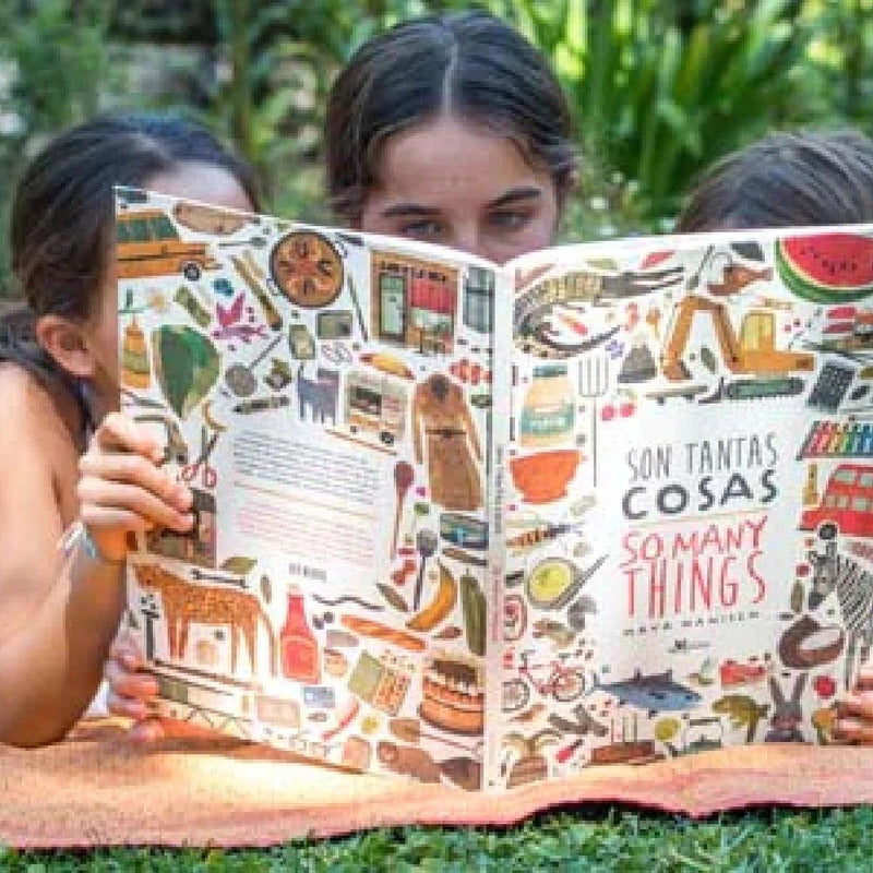 Son Tantas Cosas So Many Things (tapa Dura) / Maya Hanisch Reseña: 44 PÁGINAS. Son tantas cosas / So Many Things es un libro que nos muestra, a través de hermosas ilustraciones, algunas de las cosas que hay en la casa, en el jardín, en la escuela, en el supermercado, en el campo, en la playa, en la ciudad, en la naturaleza. Animales, aves, peces, flores, medios de transporte son algunos de los elementos que ilustra este libro bilingüe, en español e inglés. Un libro para observar por horas, aprendiendo.