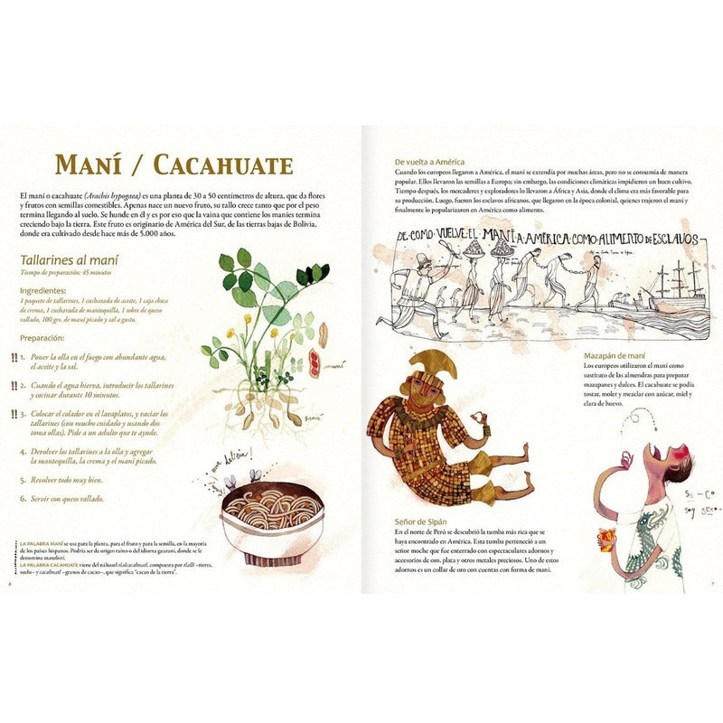 Sabores De América (tapa Dura) / Pavez Y Recart Reseña: 32 PÁGINAS. DE ANA MARÍA PAVEZ, CONSTANZA RECART ILUSTRADO POR ISABEL HOJAS Maíz, papa, poroto, palta, zapallo, tomate, ají, maní, chocolate, chirimoya, papaya, camote son algunos de los alimentos que hasta el sig lo XV solo eran consumidos en América. Este libro presenta vegetales y frutos americanos, con historias sobre sus orígenes, usos y recetas simples.