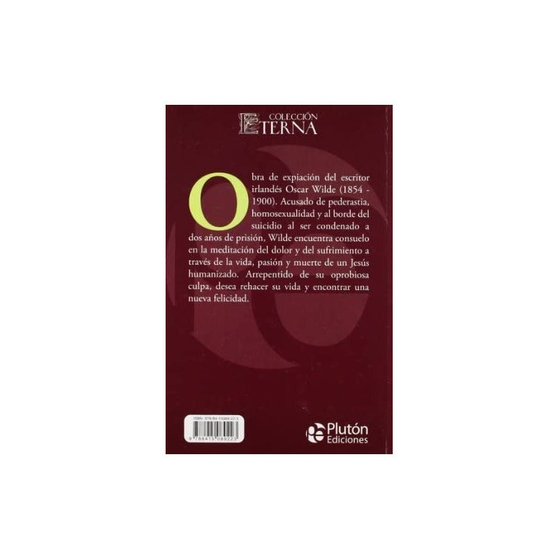 De Profundis / Oscar Wilde Reseña: Obra de castigo del escritor irlandés Oscar Wilde. Acusado de pederastía, homosexualidad y al borde del suicidio al ser condenado dos años de prisión, Wilde encuentra consuelo en la meditación del dolor y del sufrimiento a través de la vida. Arrepentido de su culpa, desea rehacer su vida y encontrar una nueva felicidad. Familia: Literatura Clásica Autor: Oscar Wilde ISBN: 978-84-15089-22-3 Edición: Segunda Edición (Año 2013) Año: 2011 Páginas: 192 Formato: 12 x 18 cm