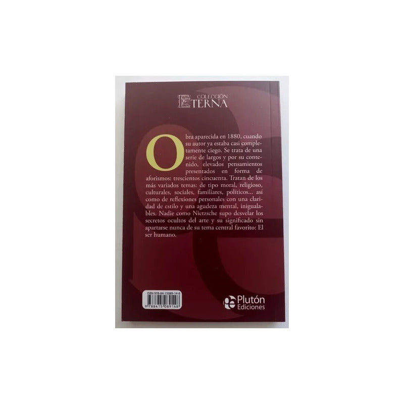 El Viajero Y Su Sombra / Nietzsche Reseña: 160 PÁGINAS. Obra aparecida en 1880. Se trata de una serie de largos pensamientos presentados en forma de aforismos de variados temas de tipo moral, religioso, culturales, sociales, familiares, etc.