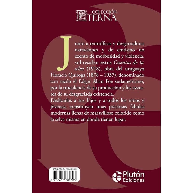 Cuentos De La Selva / Horacio Quiroga Reseña: 128 PÁGINAS. Junto a terroríficas y desgarradoras narraciones y de erotismo no exento de morbosidad y violencia, sobresalen estos Cuentos de la selva (1918), obra del uruguayo Horacio Quiroga (1878 – 1937), denominado con razón el Edgar Allan Poe sudamericano, por la truculencia de su producción y los avatares de su desgraciada existencia. Dedicados a sus hijos y a todos los niños y jóvenes, constituyen unas preciosas fábulas modernas llenas de maravilloso colorido como la selva misma en donde tienen lugar.