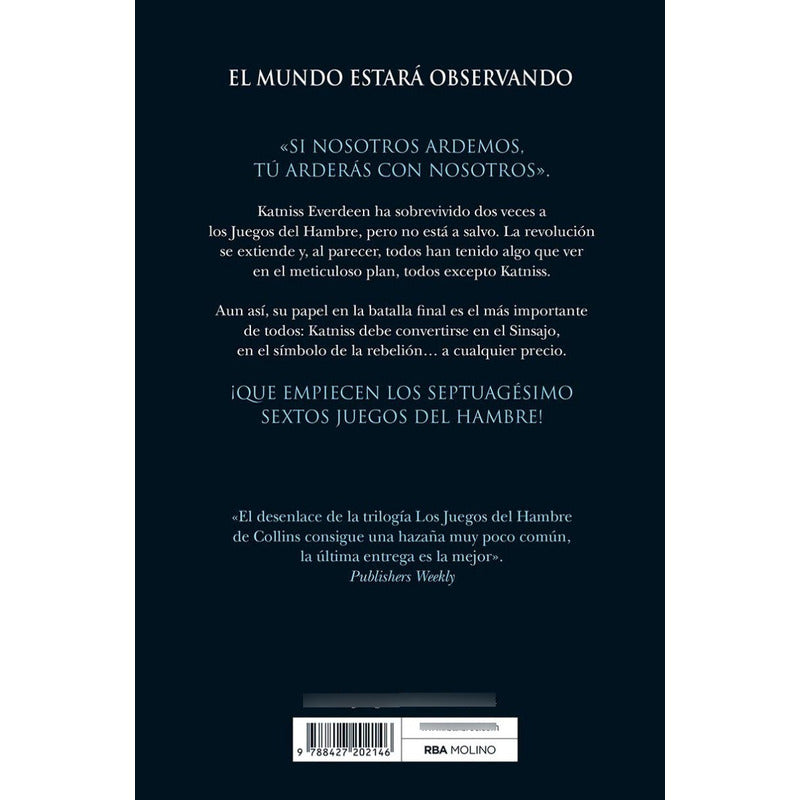 Sinsajo (juegos Del Hambre 3) / Suzanne Collins 432 PÁGINAS. Katnis Everdeen ha sobrevivido dos veces a Los juegos del hambre, pero no está a salvo. La revolución seextiende y, al parecer, todos han tenido algo que ver en el meticuloso plan, todos excepto Katniss. Aun así su papel en la batalla final es el más importante de todos. Katniss debe convertirse en el Sinsajo, en el símbolo de la rebelión...a cualquier precio. ¡Que empiecen los septuagésimo sextos juegos del hambre!