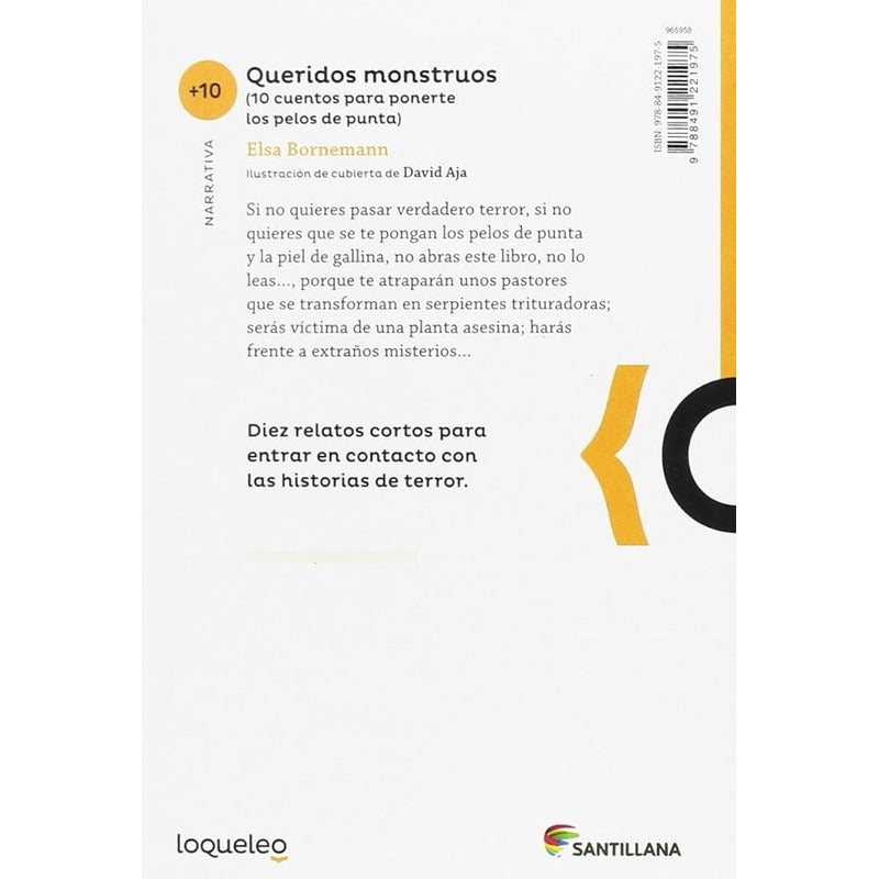 Queridos Monstruos / Elsa Bornemann Reseña: 184 páginas. Pastorcitos que se transforman en serpientes trituradoras; un actor de obras de horror que es, él mismo, la encarnación de su personaje más macabro; adolescentes de ultratumba; fantasmas que resultan sospechosos de asesinato; lobisones y basiliscos: a través de personajes como estos, Elsa Bornemann redescubre en Queridos monstruos el arraigo profundo de las narraciones extraordinarias.