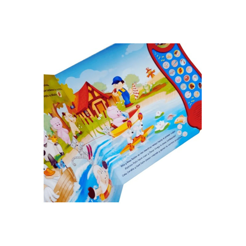 Animales Ruidosos 18 Sonidos Divertidos (tapa Dura) 6 páginas. Únete a la diversión en la diversión en la granja con este libro de Mega Sounds y conoce al granjero Jaime y a los animales mientras hacen carreras en el estanque, participan en alocadas pruebas en el campo y terminan jugando a la pelota. Medidas (ancho x alto cm) 30 x 28