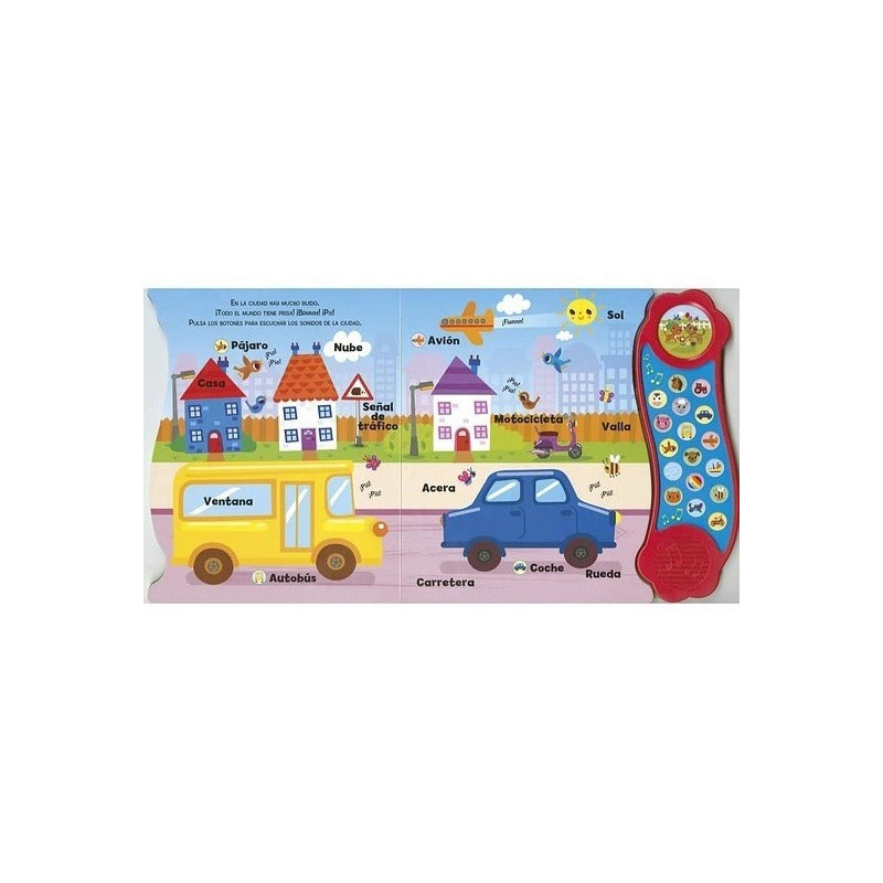 Descubre nuevas palabras, nuevos amigos y 18 sonidos ruidosos fantásticos en este hermoso libro ilustrado. Léelo y encuentra el botón que hace el sonido de cada primera palabra. 28 x 29 cms, 8 páginas.