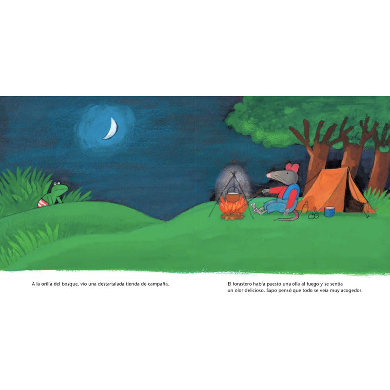 Sapo Y El Forastero / Max Velthuijs (tapa Dura) Reseña: 28 PÁGINAS. Un forastero ha hecho su campamento a la orilla del bosque y todos los animales lo miran con desconfianza. Sólo Sapo se anima a conocerlo, y descubre en Rata a un virtuoso nuevo amigo. Una historia que nos recuerda que la diversidad es fuente de riquezas. 20 X 23 CMS