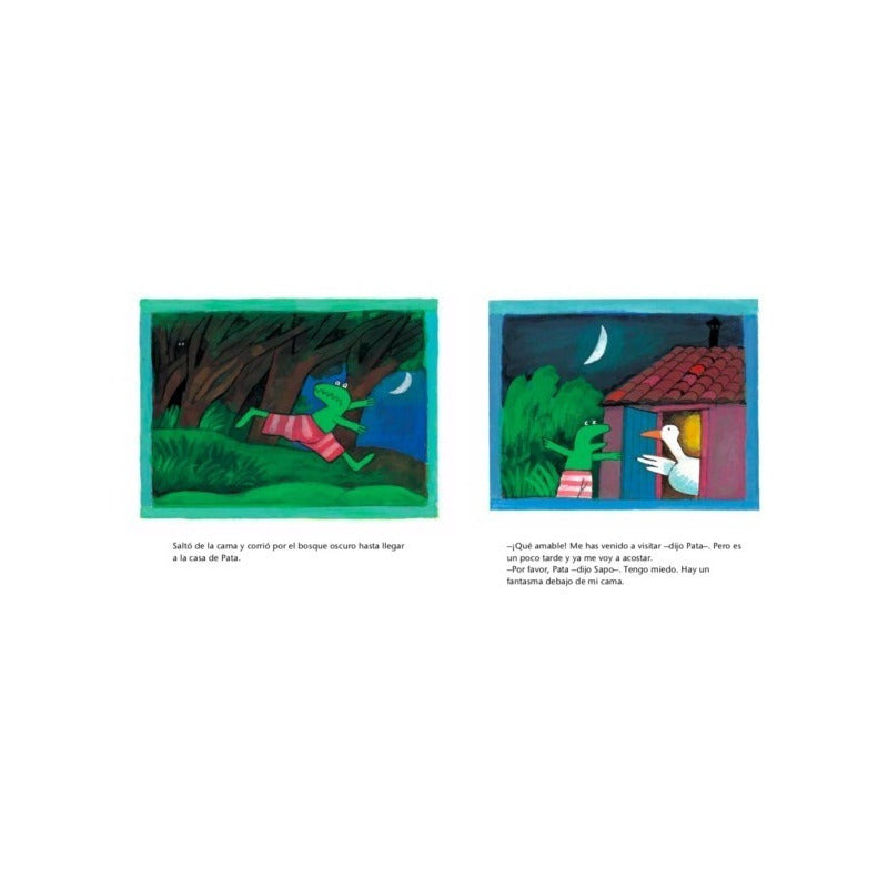Sapo Tiene Miedo / Max Velthuijs (tapa Dura) Reseña: 28 PÁGINAS. Sapo, Pata y Cochinito no creen en monstruos y fantasmas, hasta que oyen ruidos escalofriantes en medio de la noche. Juntos, se acurrucan en la cama de Cochinito para darse ánimo y valor. Esta reconfortante historia ofrece un gentil antídoto para el miedo que todos sentimos. 20 X 23 CMS
