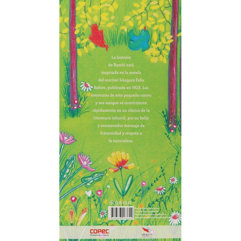 Bambi (tapa Dura) / Felix Salten Reseña: 10 PÁGINAS. TAPAS Y HOJAS DURAS. LA HISTORIA DE BAMBI ESTÁ INSPIRADA EN LA NOVELA DEL ESCRITOR HÚNGARO FELIX SALTEN, PUBLICADA EN 1923. LAS AVENTURAS DE ESTE PEQUEÑO CIERVO Y SUS AMIGOS SE CONVIRTIERON RÁPIDAMENTE EN UN CLÁSICO DE LA LITERATURA INFANTIL, POR SU BELLO Y CONMOVEDOR MENSAJE DE FRATERNIDAD Y RESPETO A LA NATURALEZA.
