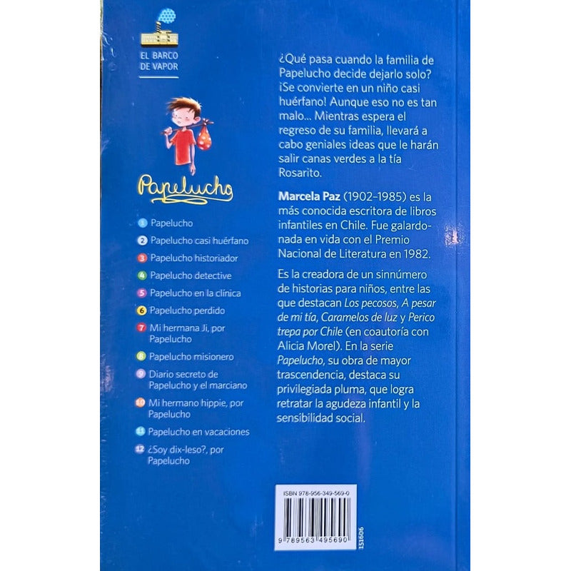 Papelucho N°2 Casi Huerfano / Marcela Paz Reseña: 112 PÁGINAS. ¿Qué pasa cuando la familia de Papelucho decide dejarlo solo?¡Se convierte en un niño casi huérfano! Aunque esto no es tan malo...Mientras espera el regreso de su familia, llevará a cabo geniales ideas que le harán salir canas verdes a la tía Rosario.-