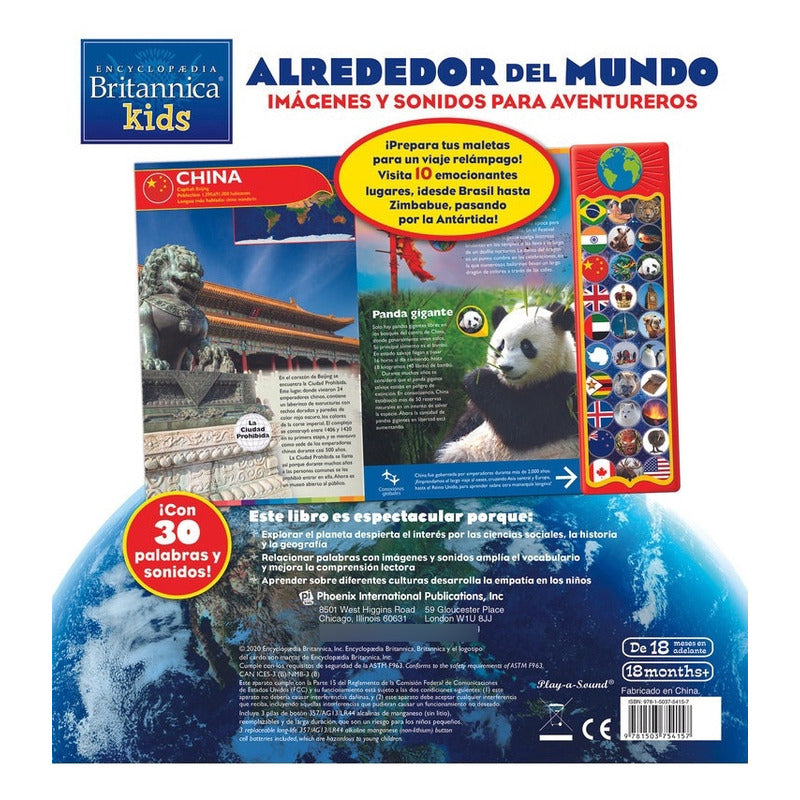 Alrededor Del Mundo Enciclopedia Britannica Con 30 Sonidos Prepara tus maletas para un viaje relámpago. Conoce a través de las imágenes y sonidos 10 emocionantes lugares, desde Brasil hasta Zimbabue, pasando por la Antártida. Páginas: 20 Idioma. Español Encuadernación: Cartoné Tamaño: 30 x 27 Año edición: 2020