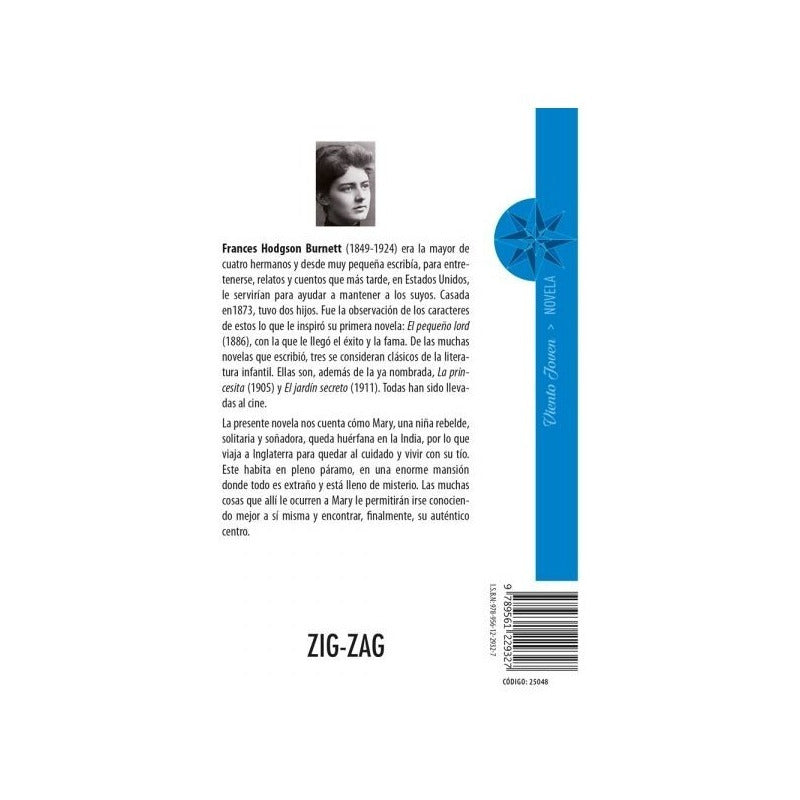 El Jardin Secreto / Frances Hodgson Autor Hodgson Burnett, Frances Nacionalidad del autor Estadounidense Colección Viento Joven Formato (cm) 18,5x13 Páginas 176 Tipo de tapa Rústica Rango Edad Desde 10 Mary, luego de quedar huérfana en la India, se va a Inglaterra a vivir con su tío. Aquí encuentra un jardín secreto, lugar en el que logra conocerse a sí misma. Este libro, considerado un clásico de la literatura infantil, se ha adaptado al cine, y en 2020 se estrenará una nueva versión cinematográfica.